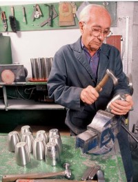 L’atelier du maître-artisan Bernard Chaudron est situé dans les Laurentides, près de Val-David. Depuis plus de 10 ans, son fils Antoine assure la relève au sein de l’entreprise familiale. Dans cet atelier, on y produit principalement de la poterie d’étain : assiettes, vases, lampes à huile, etc. Les étains sont fabriqués à partir d’un alliage qui contient, selon les normes nord-américaines, au moins 92 % d’étain, de l’antimoine et du cuivre. Cet alliage sans plomb est, par conséquent, non toxique, ne transmet aucun goût et ne noircit jamais. Les pièces sont façonnées à froid, selon des méthodes très anciennes et leur fini sera poli, martelé ou encore gravé par des éléments de la nature. | ![]() www.chaudron.ca |