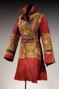 "Depuis près de trente ans, ma démarche s’appuie sur la conviction que le vêtement est une création à part entière, une œuvre à la fois picturale et sculpturale, élaborée en fonction du corps et de son mouvement. L’ensemble de mon travail témoigne, du moins je me plais à le croire, d’un parcours singulier et unique, né d’une volonté toute personnelle de revisiter le concept « d’Art à porter », si cher à la grande Sonia Delaunay. En jouant sur les mélanges de couleurs et les motifs imprimés, sur les effets d’opacité et de transparence, sur les motifs ethniques et le métissage de mes sources des références, j’aspire à créer des œuvres textiles qui, pour exotiques qu’elles puissent paraître, se dérobent à toute classification habituelle pour atteindre un syncrétisme vestimentaire inédit, qui ne renvoie à aucune référence ethnique dominante tout en ayant le pouvoir de les évoquer toutes". | ![]() Tribal |