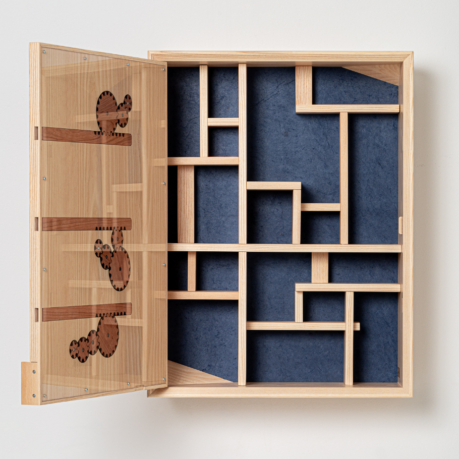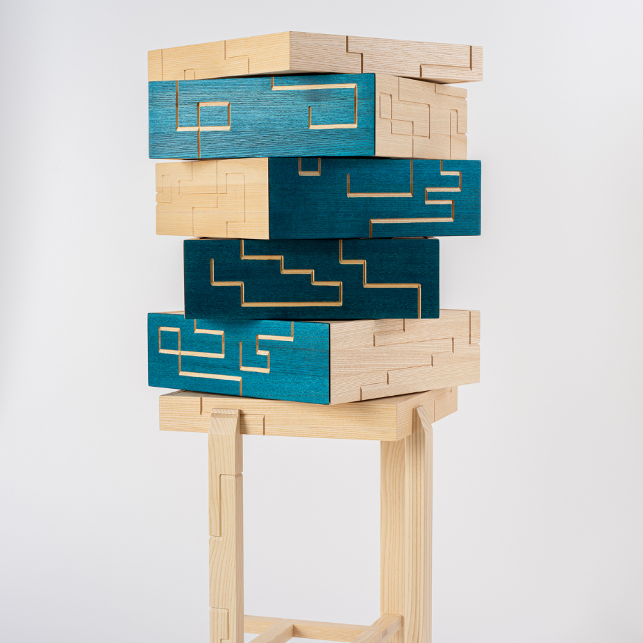 Juliette Huneau, artiste ébéniste d’origine française établie au Canada, puise dans son double parcours culturel un équilibre entre savoir-faire traditionnel et approche contemporaine. Formée en France (CAP, BMA) puis à l’École d’ébénisterie d’art de Montréal (DEC), elle s’appuie sur une solide base technique nourrie par une sensibilité poétique et un grand souci du détail, donnant vie à des créations mêlant esthétique, fonctionnalité et réflexion conceptuelle. Alliant techniques artisanales et innovations mécaniques, elle conçoit des œuvres de mobilier énigmatiques qui dépassent leur simple fonction utilitaire. Inspirées par les cabinets secrets et les univers interactifs, ses pièces, pensées comme des puzzles, invitent l’utilisateur à interagir, à explorer et à révéler des secrets cachés. Cette approche ludique et narrative met en scène un dialogue subtil entre décor, geste et imagination. Cette philosophie se prolonge dans son travail sur mesure, où chaque projet s’enrichit de l’histoire et des inspirations de ses clients. Le tressage à la corde danoise, minutieux et répétitif, ajoute une dimension tactile et méditative, incitant à ralentir et à savourer l’instant. Ainsi, Juliette Huneau façonne des pièces uniques, profondément humaines, qui invitent à la contemplation, à l’exploration et à la réappropriation du temps.