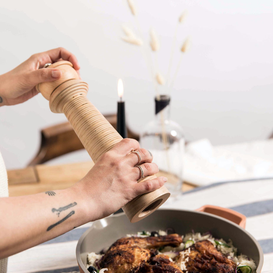 Une histoire d’amitié. Aujourd’hui, Mélanie et François fabriquent de leurs mains les mêmes salières et poivrières que Sylvain Tremblay lui-même avait imaginées et créées. Dans leur petit atelier, en Estrie, ils s’appliquent à faire revivre l’art de leur ami parti, entourés de la même odeur de bois frais. Sylvain était un amoureux du bois, élevé par un homme qui partageait la même passion. Après son départ, des milliers de salières et poivrières ornaient déjà les tables du monde entier. Mais son art n’était pas prêt à disparaître. Parce que deux amis étaient prêts à reprendre le flambeau. Et parce que Sylvain misait sur la qualité et la robustesse de ses produits : des produits qui continueront d’orner nos tables pour les décennies à venir. Chacune de nos œuvres est un hommage au travail incroyable d’un artiste qui aura marqué l’univers des métiers d’arts au Québec. Et elles n’attendent que votre table. « Leur élégance est seulement le début de l’histoire » Sylvain Tremblay nous a quitté le 2 juin 2019.