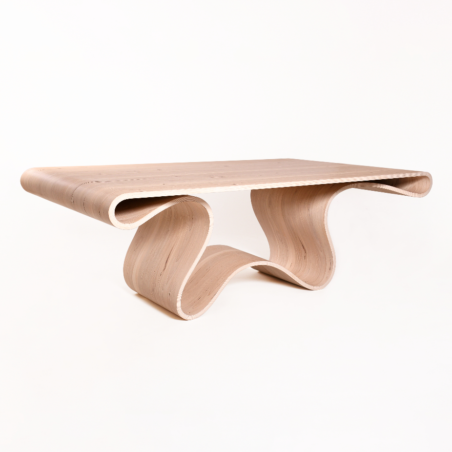 Kino Guérin, ébéniste originaire du Saguenay, reçoit sa formation en ébénisterie à l’Institut des métiers d’art au Cégep du Vieux-Montréal. Son talent est rapidement reconnu. Depuis 1998, il a reçu de nombreux prix au Québec et depuis une dizaine d’années, il reçoit régulièrement des bourses de recherche du Conseil des arts du Québec et du Canada. Kino Guérin aime les défis : faire des objets avec un seul morceau de bois. Bien sûr il n’y a pas qu’un seul morceau, il y en a plein, très minces, collés les uns par-dessus les autres pour pouvoir les courber, leur donner du mouvement.