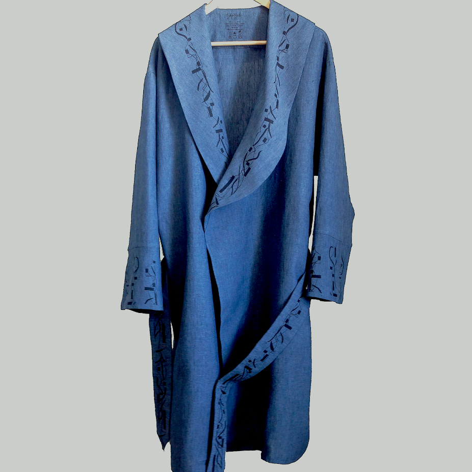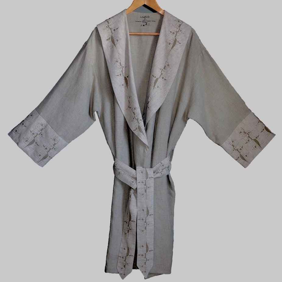 Design, impression et confection de peignoirs en lin et coton.