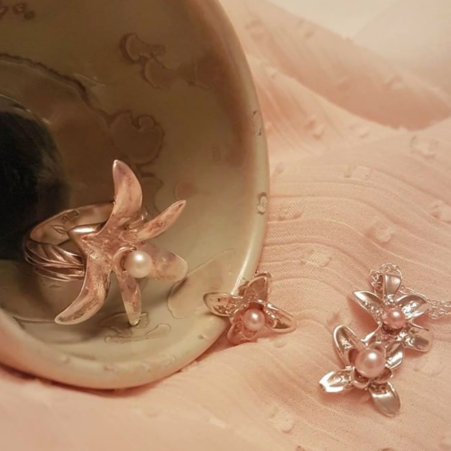 Après mes études à l’École de joaillerie de Québec en 2003, je démarre mon atelier de création dans Charlevoix. Depuis, je travaille à développer des bijoux qui unissent ma passion pour la nature et les arts. C’est en 2009, dans le cadre d’une bourse du Conseil des arts et des lettres du Québec que je perfectionne ma technique de moulage de matière naturelle. Ce procédé unique consiste à transformer de véritables fleurs, plantes ou autres éléments naturels en bijoux d’argent ou d’or. Je fabrique une grande variété de bijoux élégants et harmonieux. Ils surprennent par le réalisme des formes et des textures issues des éléments qu’ils incarnent. Depuis juin 2012, je suis copropriétaire de la boutique Indigène art et culture, à la Malbaie. J’ai un atelier sur place et j’y présente mes collections. Mes pièces se retrouvent à la boutique du Conseil des métiers d’art de Montréal, à la boutique du Jardin botanique de Montréal et à la boutique Elsa de Québec. Je participe aussi au Salon des métiers d’art de Montréal et Québec depuis 2006 en plus de faire plusieurs évènements de vente du Saguenay en passant par Charlevoix, Québec, Montréal et Ottawa. Au cours du Salon des métiers d’art de Québec 2013, j’ai gagné le prix Ville de Québec pour l’excellence de mes œuvres présentées.